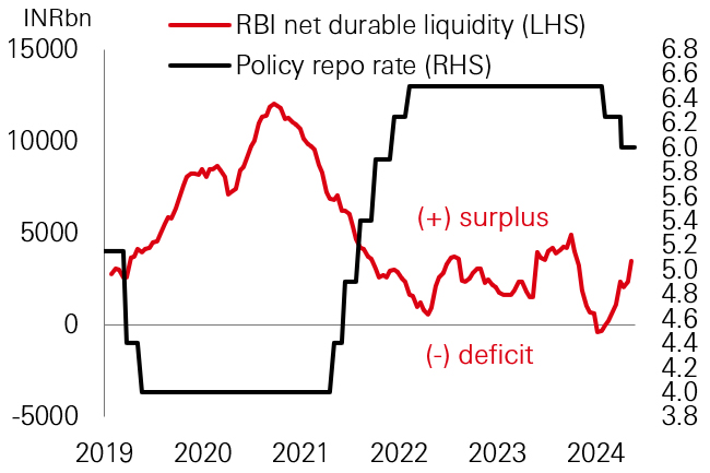 Macro data points to an ongoing modest, albeit uneven, cyclical growth recovery. Back-loaded government investment and a higher contribution of net exports (as imports contracted) drove a growth rebound in Q4FY25, supported also by steady rural consumption. Against an uncertain global backdrop, the Reserve Bank of India (RBI) has delivered policy rate cuts, liquidity infusion, and macro-prudential easing to support the economy amid easing inflation. Further monetary support will be data dependent. We expect income tax relief, rate cuts, and benign inflation to lift purchasing power, which should aid a recovery in urban demand.