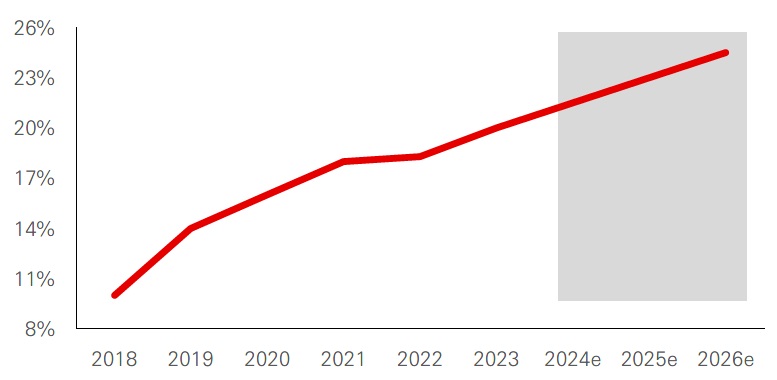 Source: Statista, Gartner, HSBC Research estimates. March 2025.