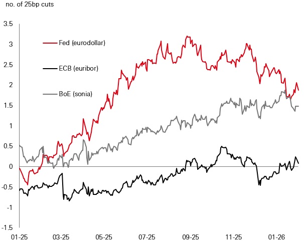 How many rate cuts from Fed, ECB, BoE in 2026?