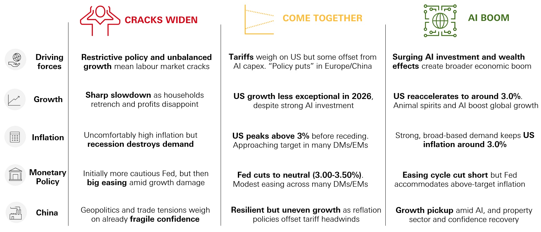- We expect more balanced, trend-like US growth this year. Tariffs and AI capex still pose upside risks to inflation